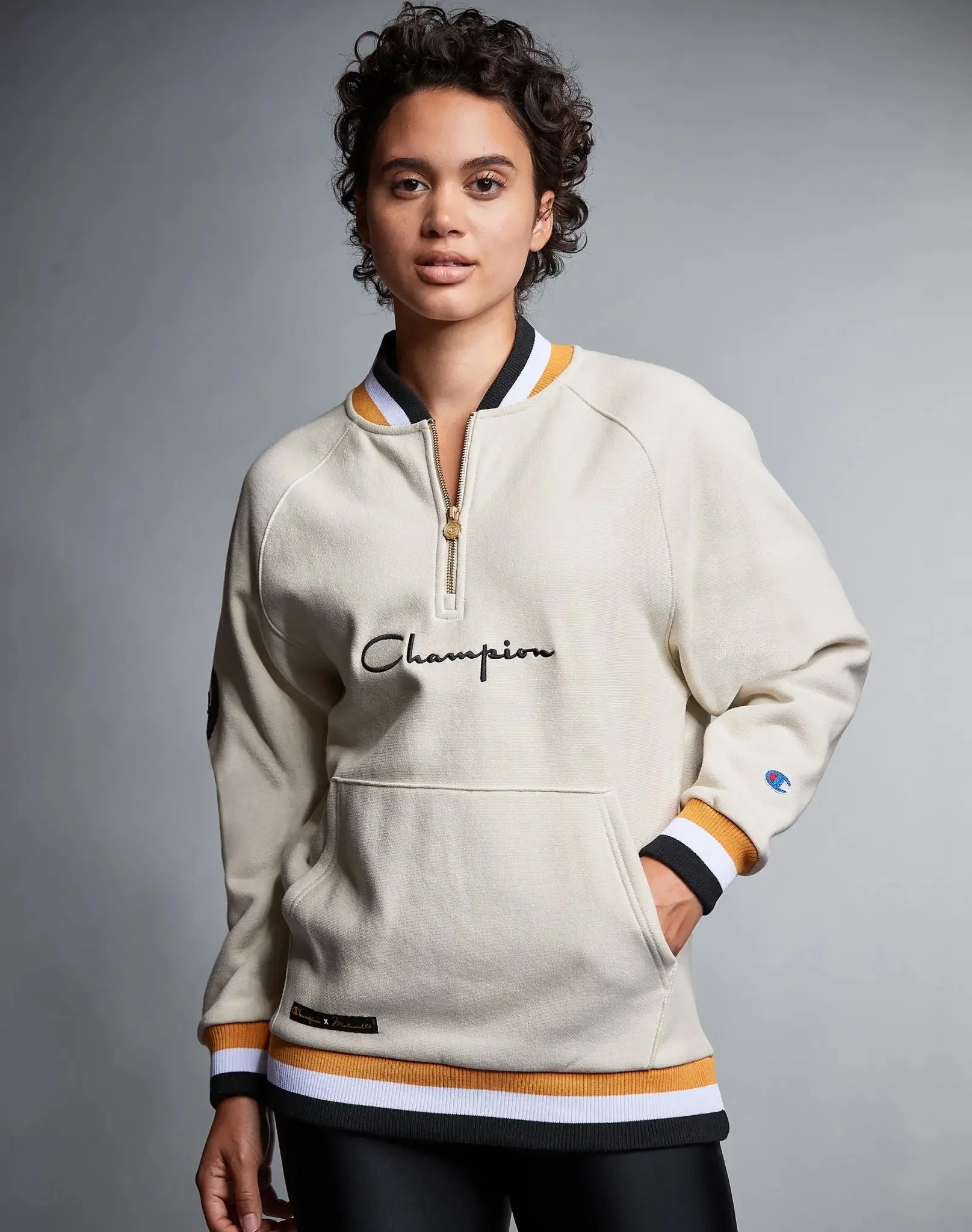 Inspired by the 1960 Olympic Games, the Champion X Muhammad Ali Round 2 collection was designed with his six core principles: confidence, conviction, dedication, giving, respect, and spirituality. The capsule’s new designs and fresh colors are fabricated to evoke the ethos of the sports legend during his inspirational gold medal win as an 18-year-old. The graphics in this collection include Ali’s iconic images and signature quotes. The pieces feature gold details and elegant logos, fit for a partnership with boxing royalty.
