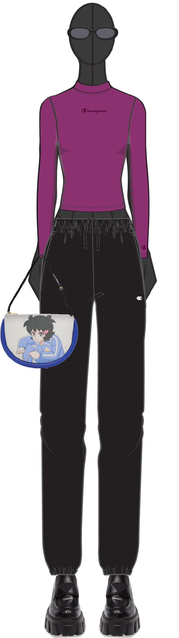Graphics subtly nod to cyberpunk metallic influences and feminine cursive motifs that defined the era. Classic powerblend and soft touch silos mix and match to create nostalgic looks, while an icy novelty cord set creates a modern twist on a classic aesthetic.
