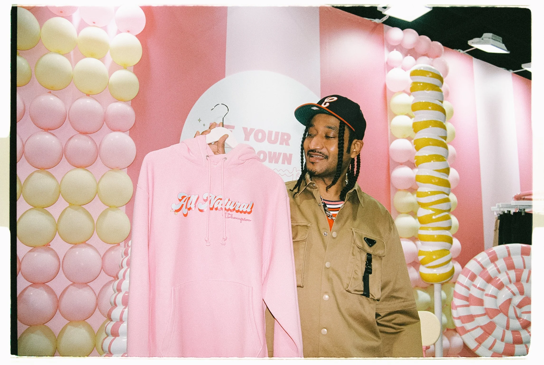 Champion partnered with KNC Beauty to create a size inclusive collaboration collection with sizes ranging from XS to 3X. Each piece features whimsical graphics, rhinestone logos, and more. This collection was activated at ComplexCon 2021, including an appearance by Kristen Noel Crawley (owner of KNC Beauty).